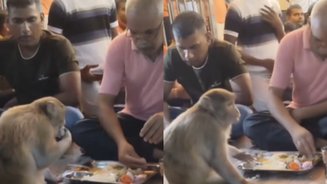 वायरल वीडियो में देखा जा सकता है कि एक शख्स किसी दावत में जमीन पर बैठे खाना खा रहा होता है. तभी अचानक एक उसके पास आता है और शख्स की प्लेट से खाना खाने लगता है. कुछ समय बाद खाना परोसने वाला शख्स बंदर वहां से भगा रहा होता है तभी जमीन पर बैठा व्यक्ति ऐसा करने से रोक देता है. वीडियो में दिखाई दे रहा है कि बंदर शख्स के सामने बैठकर बड़े आराम में खीर खा रहा है.