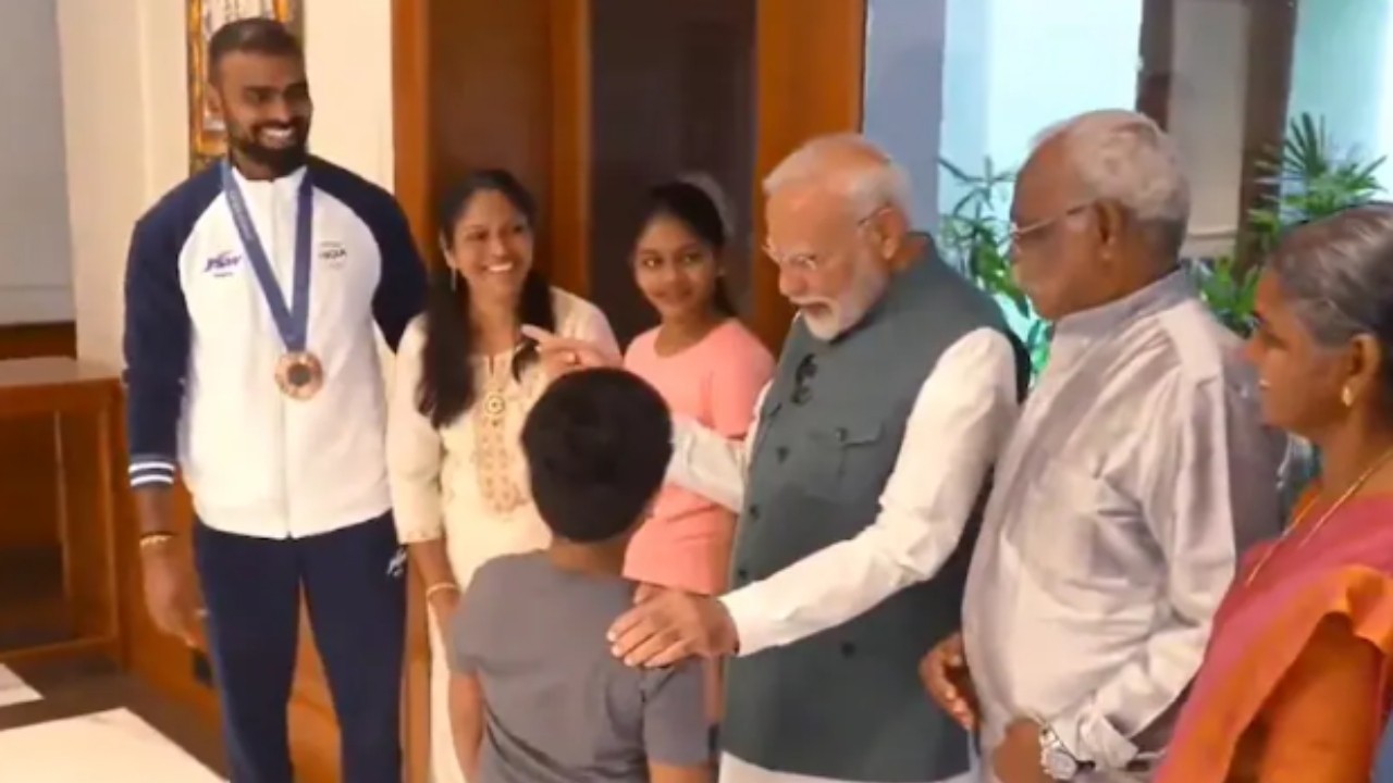 वायरल वीडियो में पीएम मोदी श्रीजेस के बेटे से पूछा कि क्या ये मारता है? जवाब में लड़के ने सिर हिलाया, जिससे सभी हंस पड़े. बाद में वीडियो में पीएम को बच्चे को मिठाई देते हुए देखा गया.