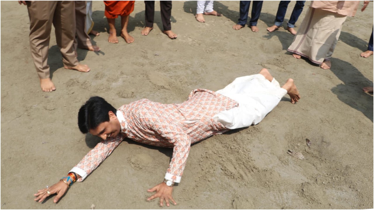 कथावाचक कुमार विश्वास मथुरा में रमण रेती में लोटते हुए…