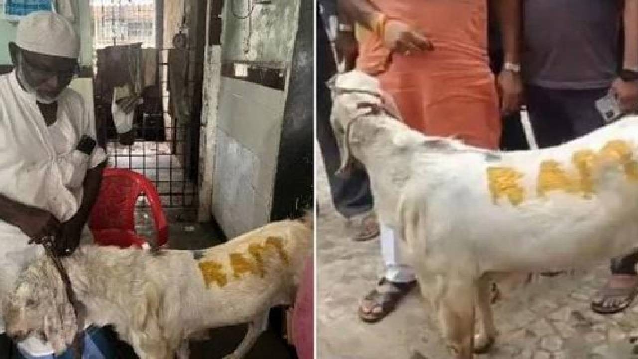 Mumbai Viral News: बकरीद के मौके पर बकरे की पीठ पर राम लिखने के आरोप में मुंबई पुलिस ने 3 लोगों को गिरफ्तार कर लिया है. 17 जून ईद-उल अजहा यानी कुर्बानी की ईद मनाई जा रही है. इस दिन बकरे की कुर्बानी दी जाती है. मुंबई में जिस बकरे की कुर्बानी दी जानी थी. उसकी पीठ पर हल्दी से या फिर अन्य किसी पीले पदार्थ से राम लिखा था. जैसे ही यह खबर सोशल मीडिया पर वायरल हुई तो हिंदू संगठन ने इस मामले को लेकर पुलिस में शिकायत दर्ज कराई.