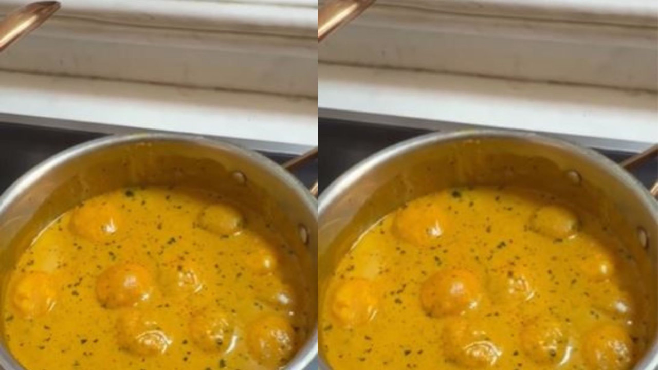 ये है 'रसगुल्ले की सब्जी'. क्या नाम सुनते ही आपकी जीभ टपकने लगी. ऐसा हो भी क्यों न सब्जी इतनी लजीज और नई जो है. रसगुल्ले की इस सब्जी को @saikatchakrabortyyy इंस्टाग्राम नाम के यूजर ने शेयर किया है. कुछ लोग इस वीडियो को देखकर माथा पकड़ रहे हैं जबकि कुछ कह रहे हैं कि वे इस सब्जी को एक बार जरूर ट्राई करना चाहेंगे.