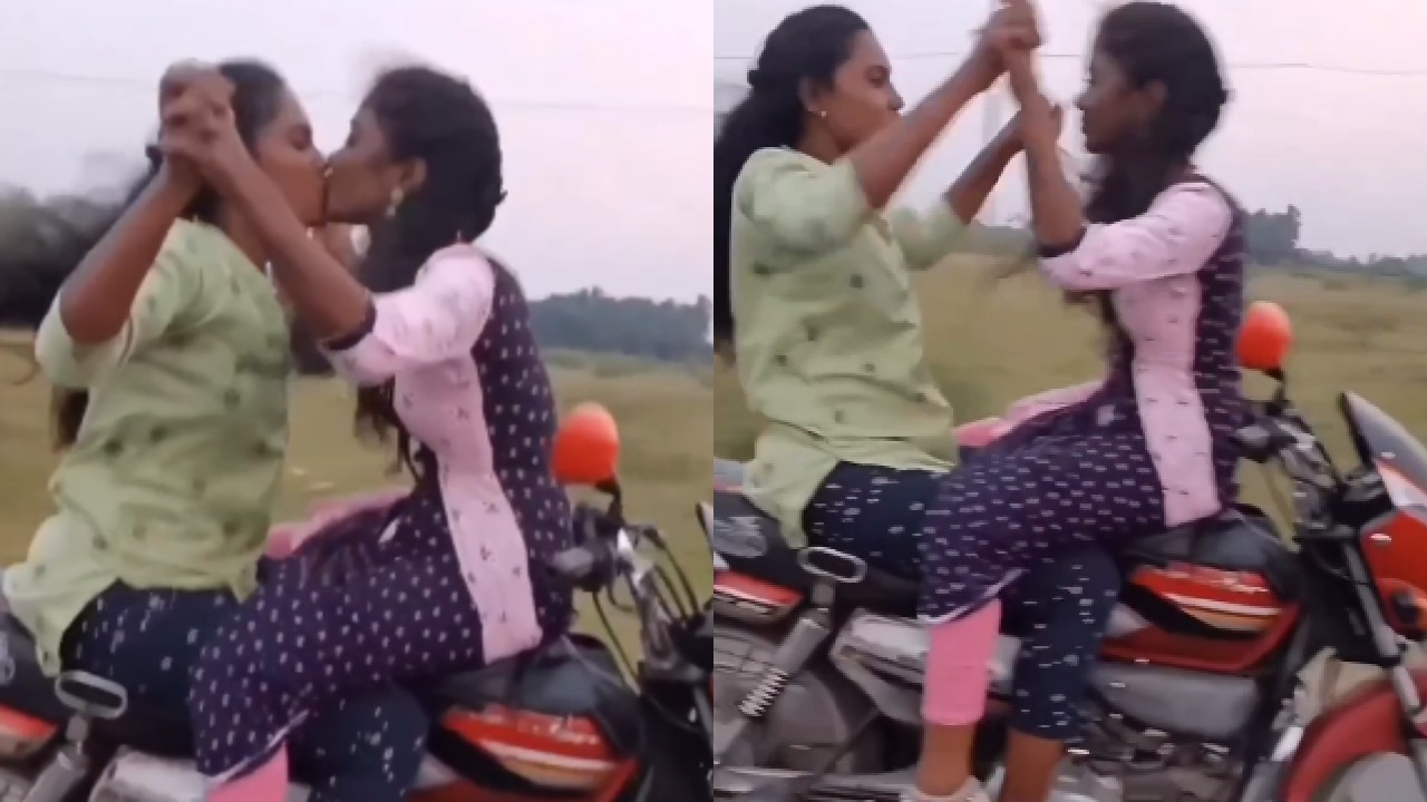 वायरल वीडियो में देखा जा सकता है कि चलती सड़क पर एक बाइक बिना ड्राइवर की ही चल रही है. बिना ड्राइवर का मतलब ये नहीं कि बाइक को भूत चला रहा है, मतलब ये हैं कि बाइक पर लड़कियां बैठी है जो पीछे की ओर देख रही है. यानी वो स्टंट कर रही हैं. इतना ही नहीं बल्कि वो लड़कियां इसलिए स्टंट कर रही हैं क्योंकि वो पीछे बैठ कर पहले एक दूसरे को हग करती है और फिर एक दूसरे को लीप किस भी करती है.