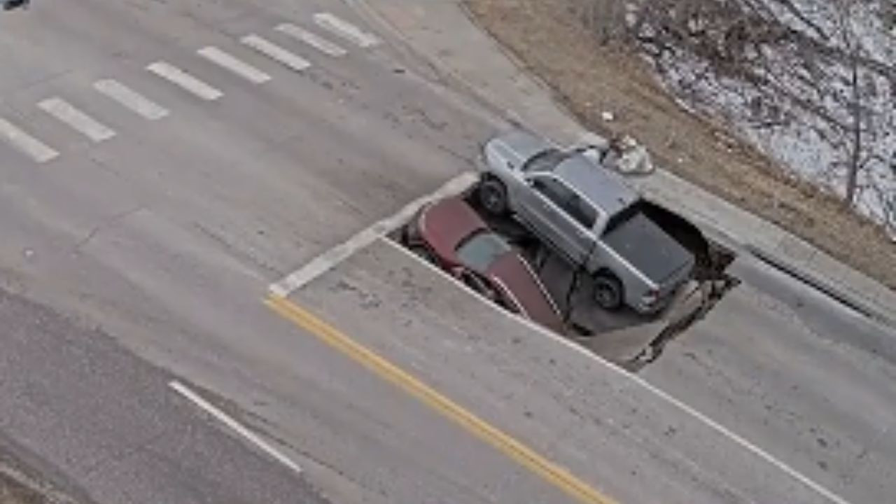 यह घटना 24 फरवरी मंगलवार को ओमाहा में यूनिवर्सिटी ऑफ नेब्रास्का के अक्सरबेन विलेज एरिया के पास एल्मवुड पार्क के पास हुई. ओमाहा पुलिस डिपार्टमेंट द्वारा जारी किए गए वीडियो में एक SUV और एक पिकअप ट्रक एक बिजी सड़क पर जा रहे हैं, तभी उनके नीचे का डामर अचानक धंस जाता है, जिससे एक गहरा गड्ढा बन जाता है.