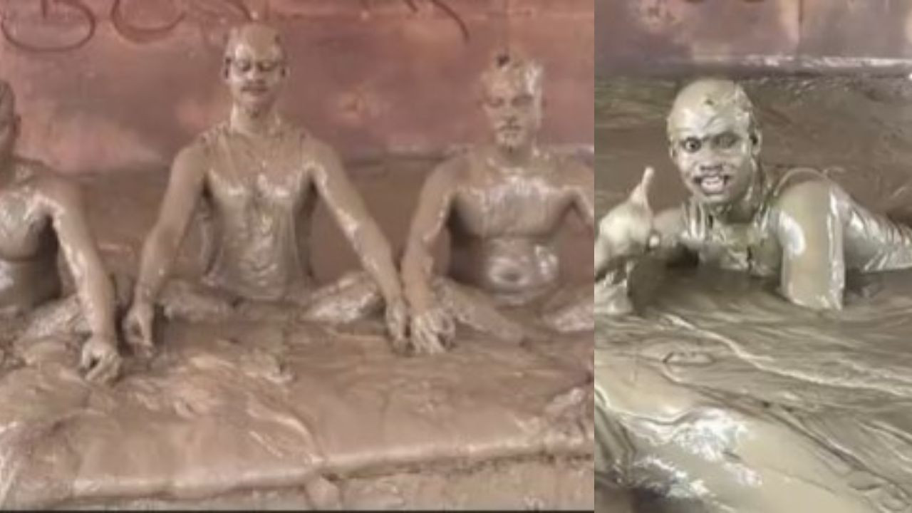 मानसून आने के बाद से ही गंगा का जलस्तर काफी बढ़ गया है. वाराणसी में सभी घाटों को गंगा ने अपनी चपेट में ले लिया. लेकिन अब गंगा का जल स्तर घट रहा है और घाटों से पानी हटने के बाद अब वहां कीचड़ जमा हो गई है. पानी के साथ आई मिट्टी घाटों पर पतली परत में जमी हुई है. जिसमें लोग अब जाकर मस्ती करते दिख रहे हैं. ऐसा ही एक वीडियो सोशल मीडिया पर वायरल हो रहा है जिसमें यो युवक कीचड़ में लोटते और मस्ती करते देखे जा रहे हैं. वो मिट्टी में कूदते हैं और पूरे शरीर पर उनकी मिट्टी लगी हुई है.