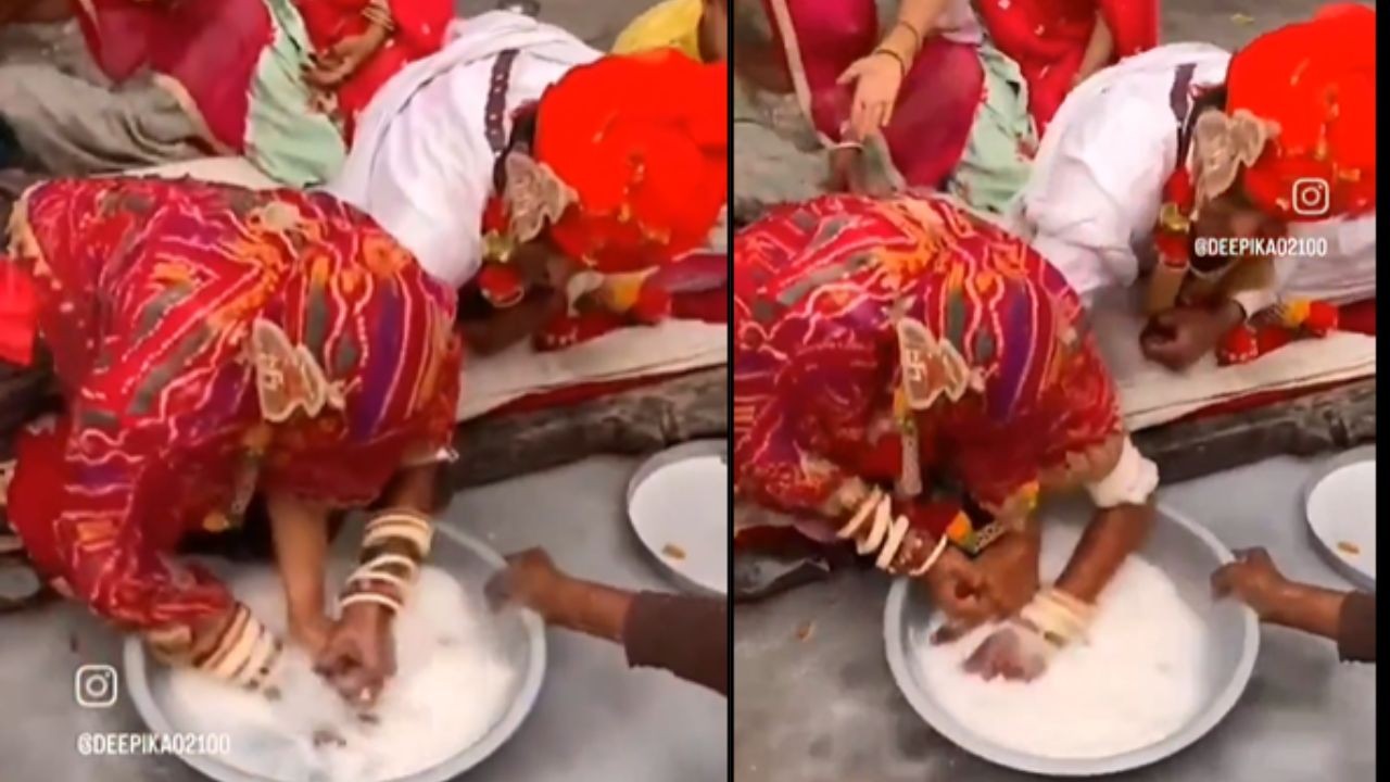 वीडियो में साफतौर पर देखा जा सकता है कि रस्म के दौरान दुल्हन पति के हाथ को पकड़ लेती है. पति को पानी में कुछ खोजने नहीं देती और पारात की तरफ झुक जाती है. ऐसे में उसका पति कुछ नहीं कर पाता. कई लोग इस वीडियो में दुल्हन की हरकत को कोस भी रहैं.