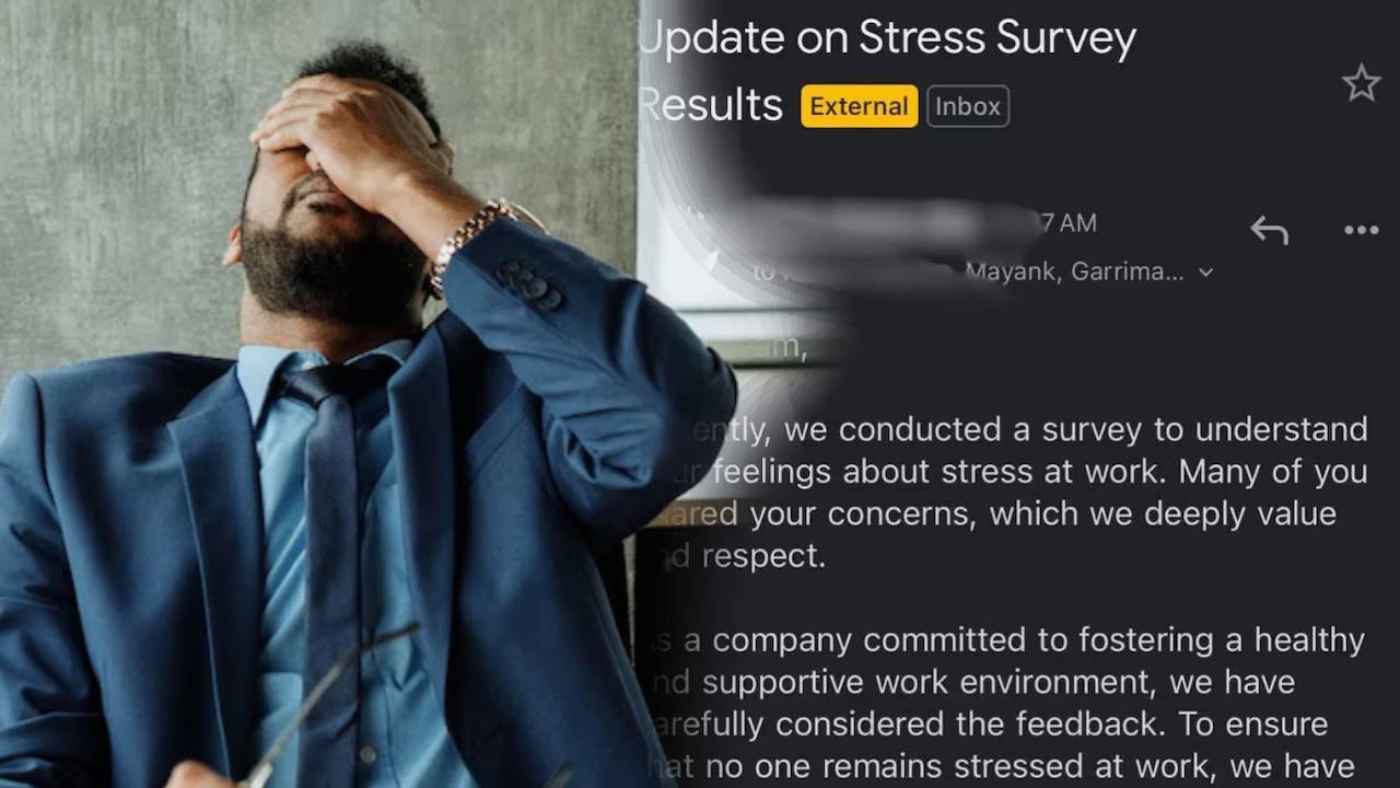 ईमेल में लिखा गया, "डीयर टीमहाल ही में, हमने कार्यस्थल पर तनाव के बारे में आपकी भावनाओं को समझने के लिए एक सर्वे किया. आप में से कई लोगों ने अपनी समस्याएं साझा कीं, जिन्हें हम बहुत महत्व देते हैं और सम्मान देते हैं. एक स्वस्थ और सहायक कार्य वातावरण को बढ़ावा देने के लिए प्रतिबद्ध कंपनी के रूप में, हमने फीडबैक पर सावधानीपूर्वक विचार किया है. यह सुनिश्चित करने के लिए कि वर्क प्लेस पर पर कोई भी व्यक्ति स्ट्रेस में न रहे, हमने उन कर्मचारियों को कंपनी से अलग करने का निर्णय लिया है जो अधिक तनाव का सामना कर रहे हैं."