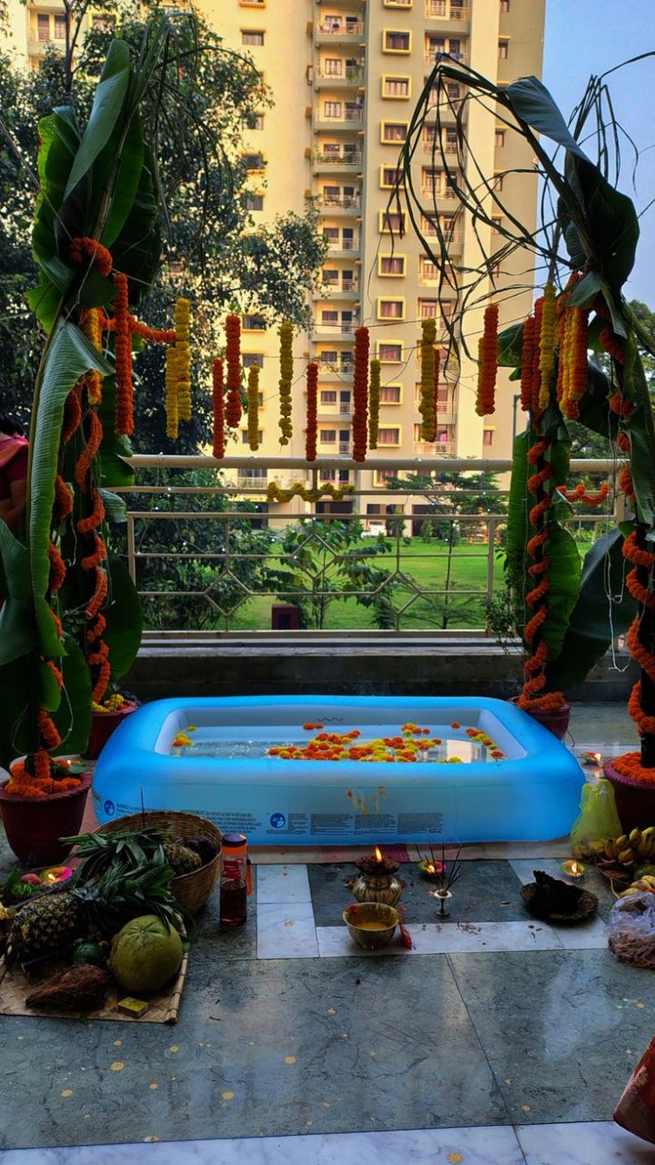 अगर आपकी सोसायटी में स्विमिंग पूल है, तो उसे छठ पूजा के लिए उपयोग में लाया जा सकता है. पूल को फूलों और दीपों से सजाकर सूर्य देव को अर्घ्य दें.