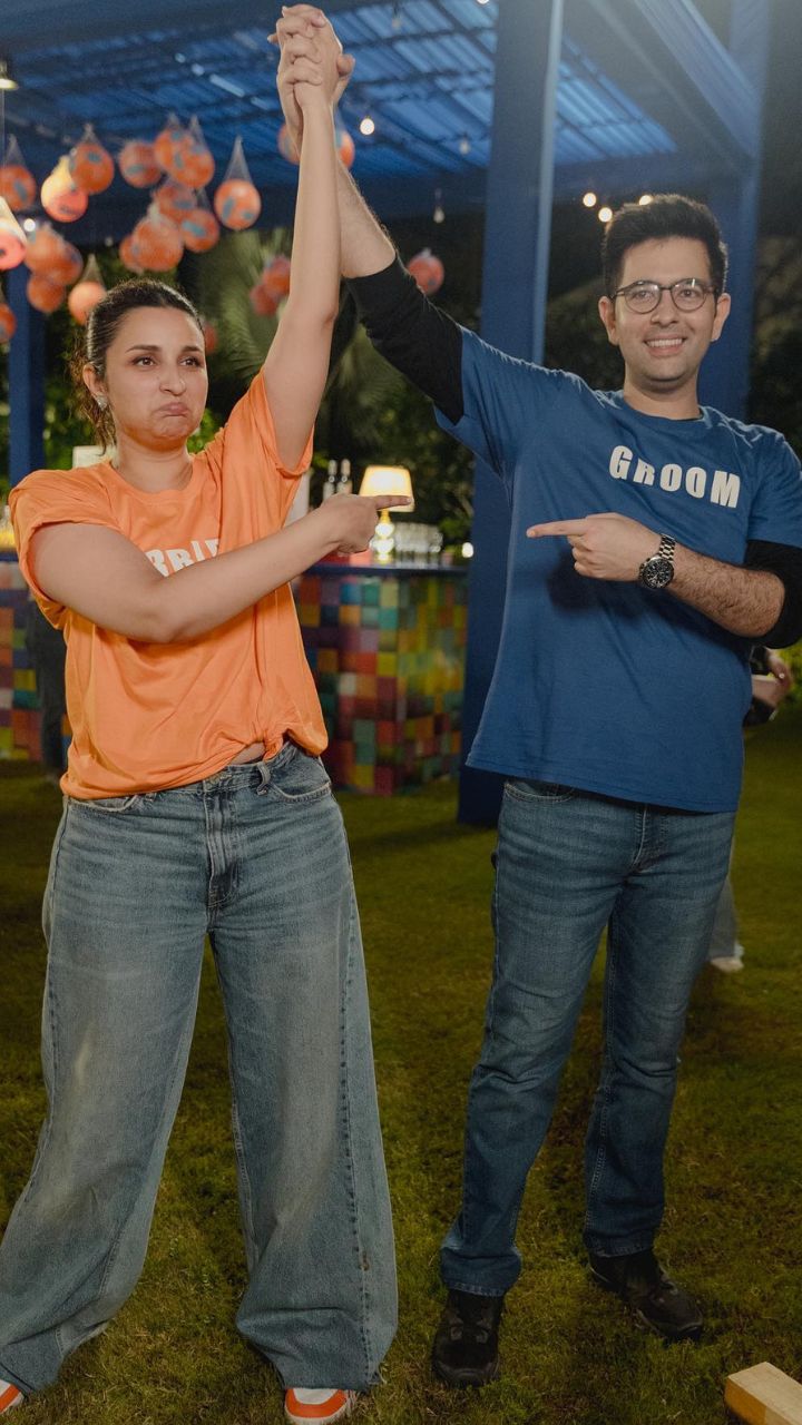 मजे की बात ये है कि इन फोटोज में परी की टी-शर्ट पर ब्राइड और राघव की टी-शर्ट पर ग्रूम लिखा हुआ देखा जा सकता है.